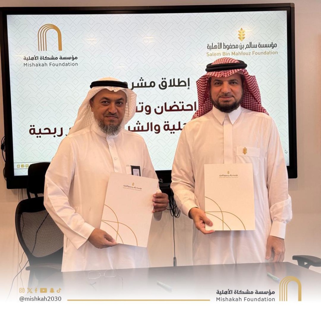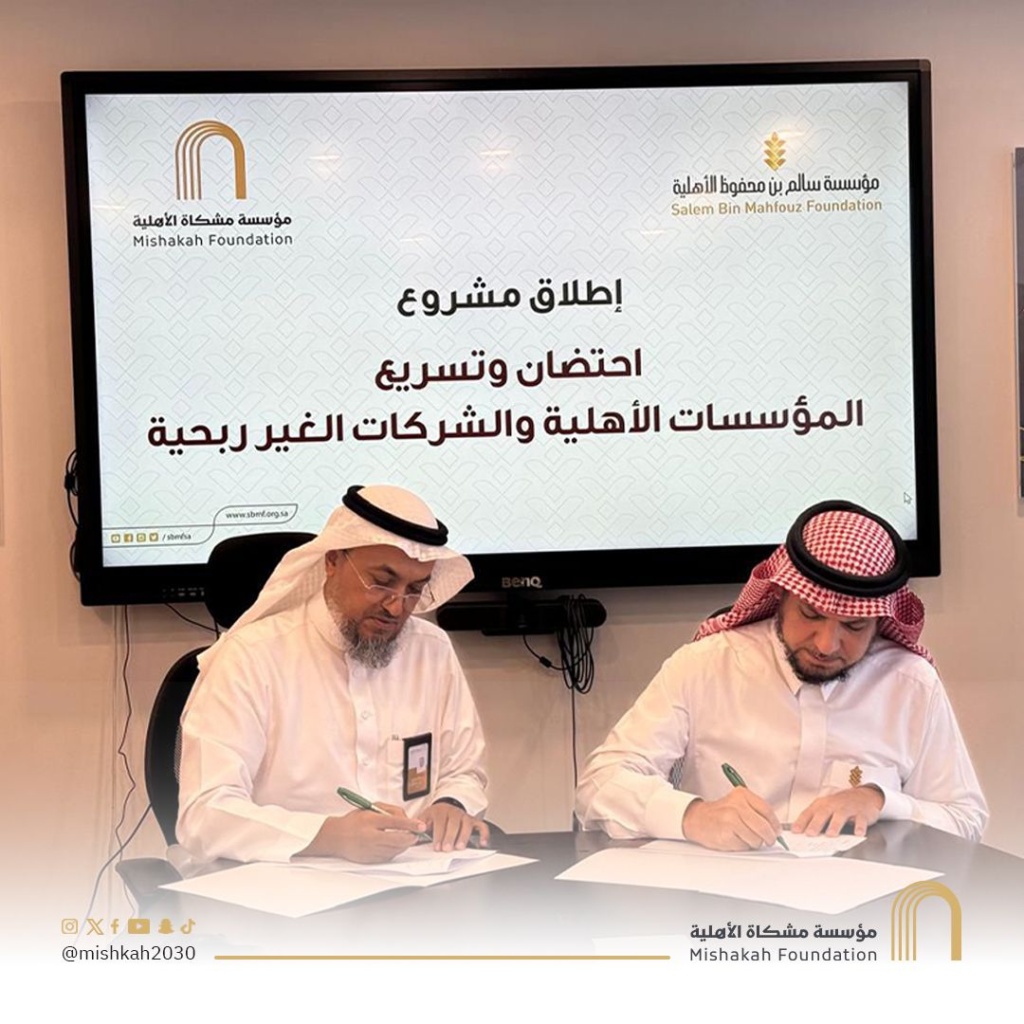 تحقيقاً لمستهدفات مؤسسة سالم بن محفوظ الأهلية فقد تم توقيع اتفاقية بين مؤسسة سالم بن محفوظ الأهلية ومثلها م. ممدوح الحربي ومؤسسة مشكاة الأهلية ومثّلها أ. عبدالله باوزير وذلك ضمن إطلاق مشروع احتضان وتسريع المؤسسات الأهلية والشركات غير الربحية ، و ذلك إسهاماً في رفع جودة الحياة.